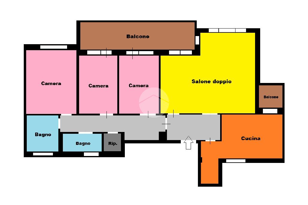All'ingresso, davanti a noi, troviamo il salone doppio, ben suddiviso in zona conversazione e sala da pranzo, un salone molto ampio da cui entra una bellissima luce grazie alla presenza di ben sei finestre. Restando nella zona giorno proseguiamo con la cucina che, per le sue generose dimensioni, ha lo spazio per mettere un comodo tavolo per mangiare e contemporaneamente avere tre pareti attrezzate. Qui troviamo una finestra e anche una porta finestra che dà su una piccola loggia. Separata da una porta, lungo un corridoio con armadio a muro, si sviluppa la zona notte, la quale presenta: tre spaziose camere, due bagni ristrutturati e un ripostiglio. Da due camere e dal soggiorno si può accedere allo spazio esterno della casa: un balcone vivibile di 18 mq, con affaccio aperto e in un contesto silenzioso.