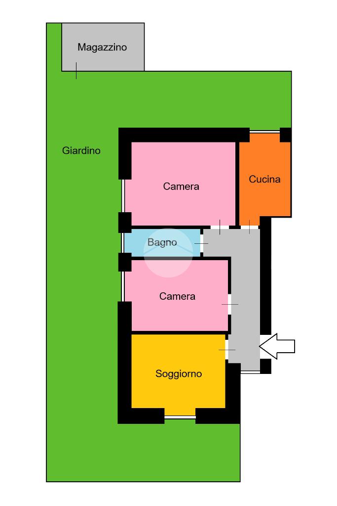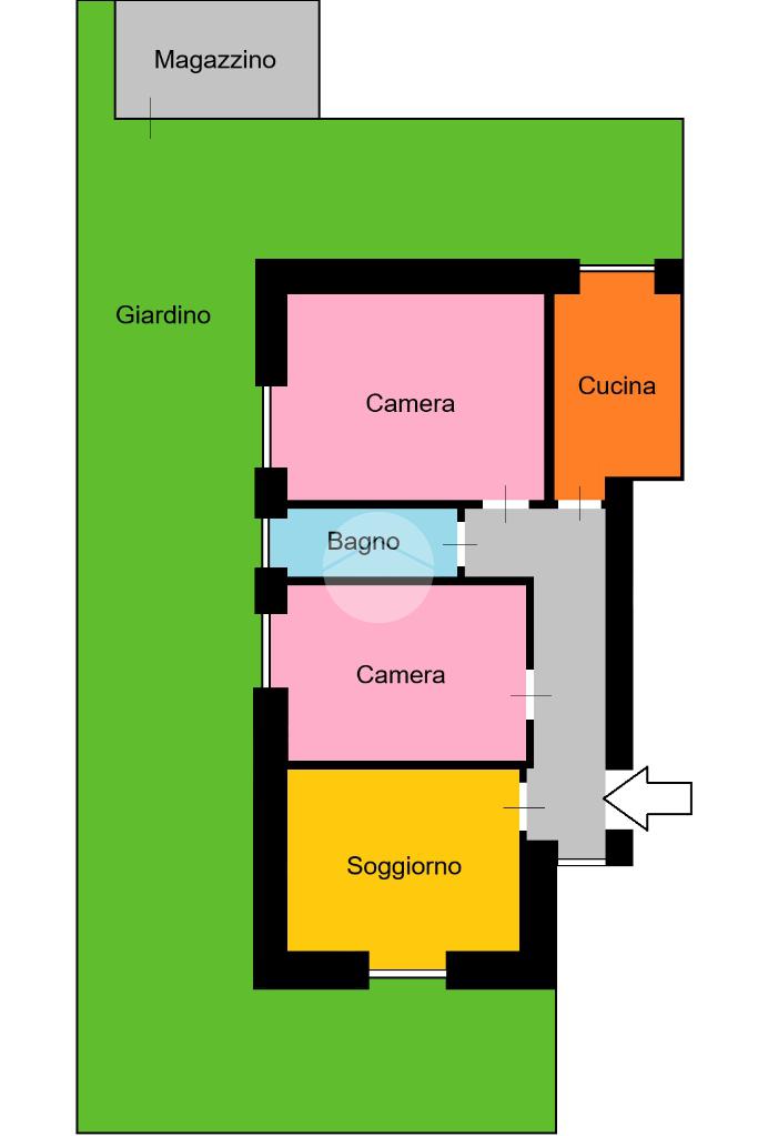 L'appartamento è da ristrutturare ma ha tutte le caratteristiche e gli spazi per diventare un trilocale. Infatti, la casa si compone di tre ambienti, una cucina vivibile e un bagno. Infine, lo spazio esterno, in parte pavimentato, segue tutto il perimetro della casa e ha anche un comodo magazzino.