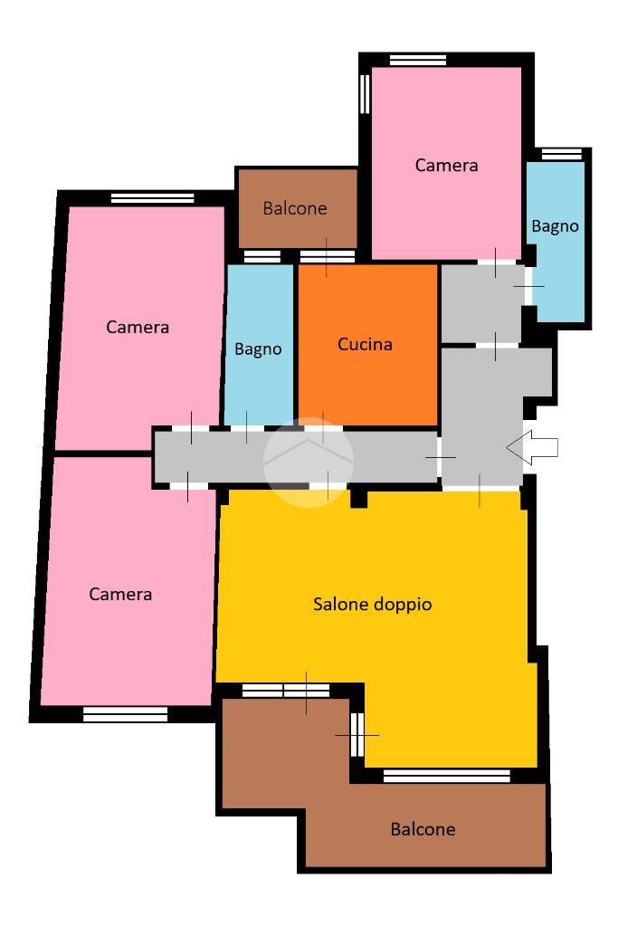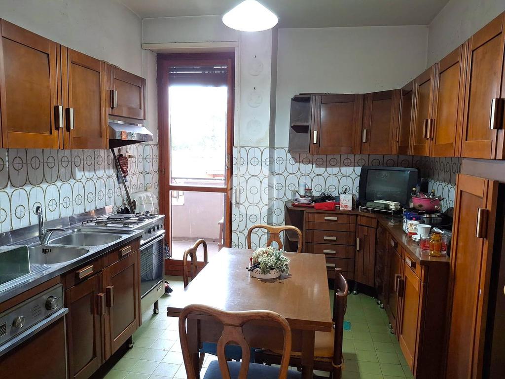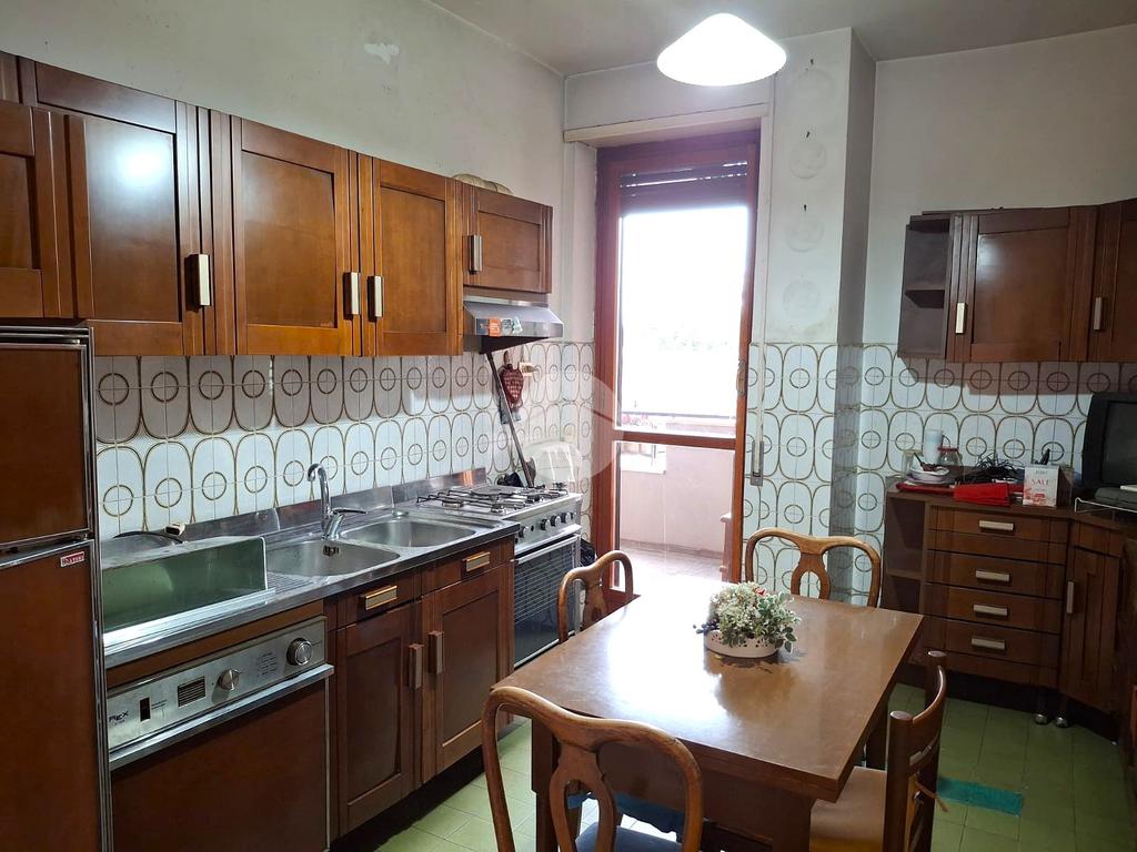 Nell'appartamento veniamo accolti da un ampio salone, subito veniamo rapiti dalla luce che entra dalle grandi finestre e che si distribuiscono su tutta la parete. La casa va ristrutturata ma presenta spazi generosi per poter personalizzare ogni ambiente. Da qui possiamo uscire nel primo balcone con un bellissimo panorama. Di fronte alla sala abbiamo la cucina vivibile e con un suo balcone riservato. Lungo un corridoio si sviluppano due stanze e un bagno: le due camere sono di ampia metratura entrambe con una grande finestra centrale. Poi, il bagno con finestra e vasca. Ritornando all'ingresso, alla destra troviamo un disimpegno con armadio a muro e poi una terza camera e il secondo bagno.