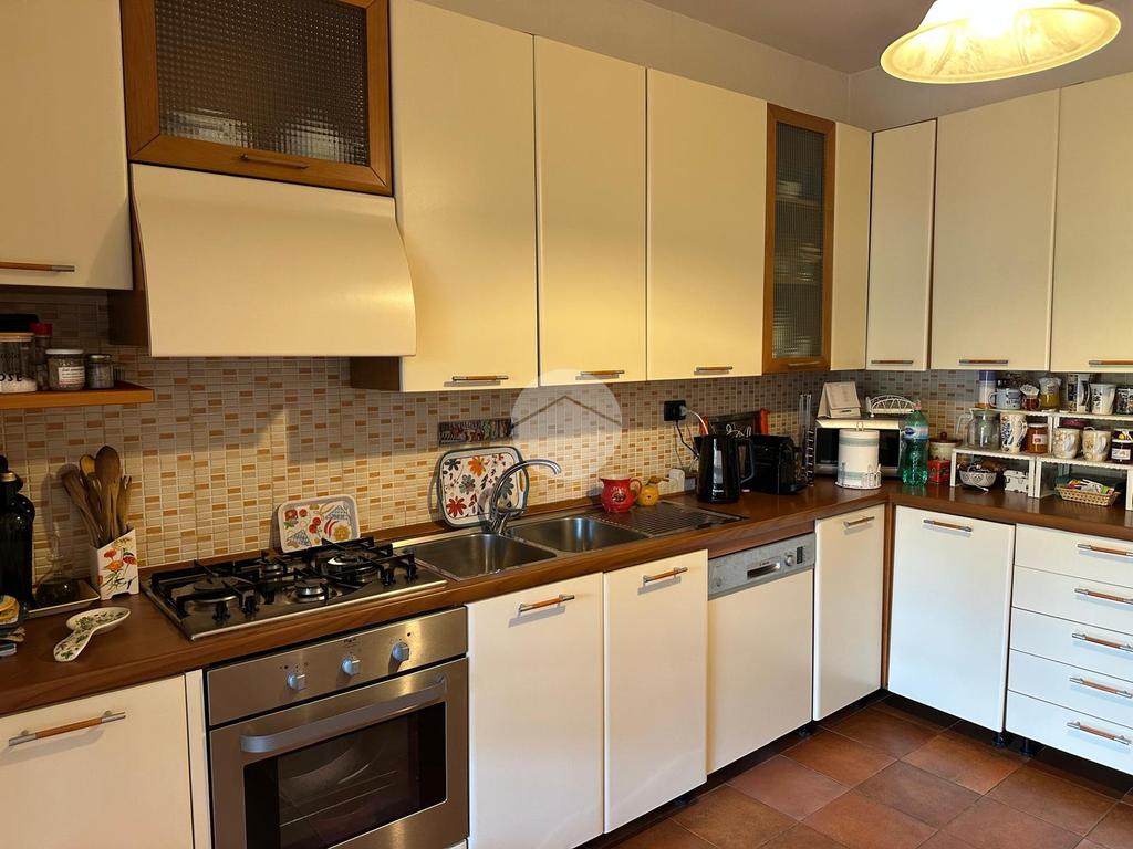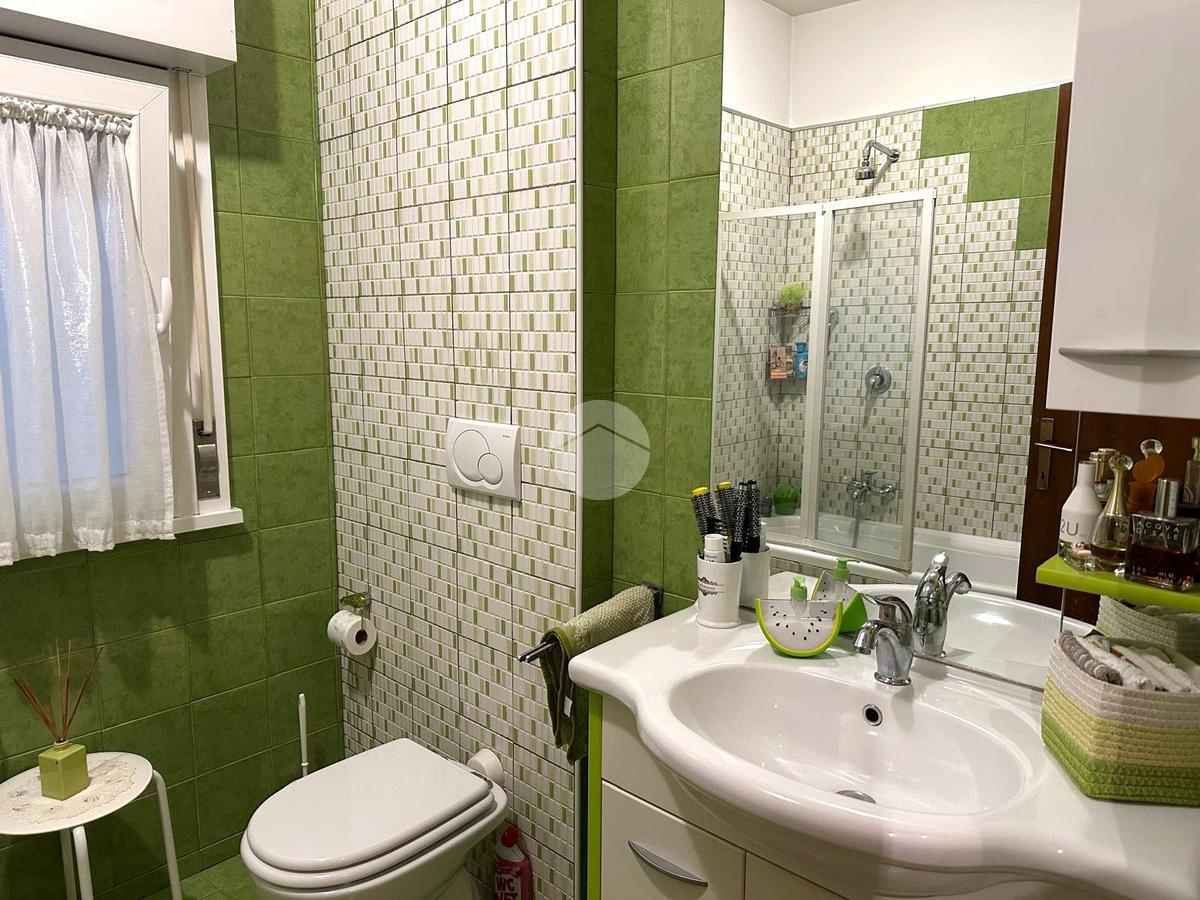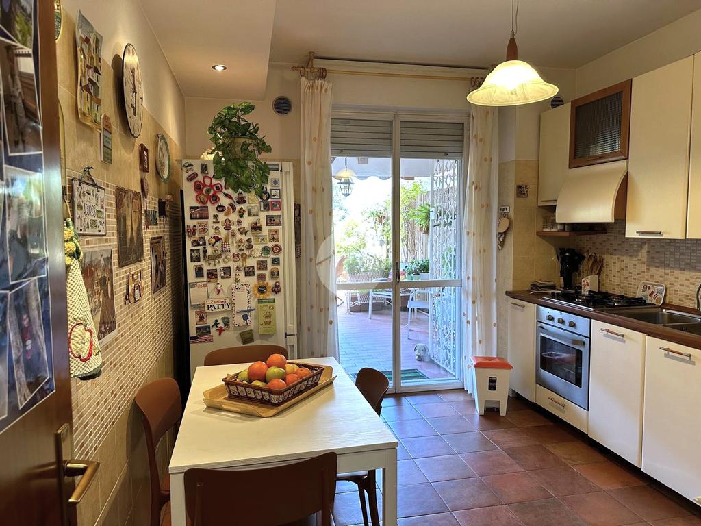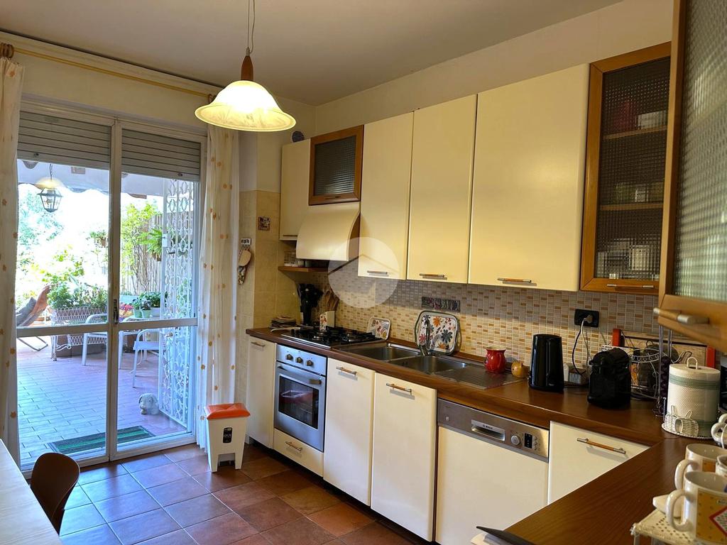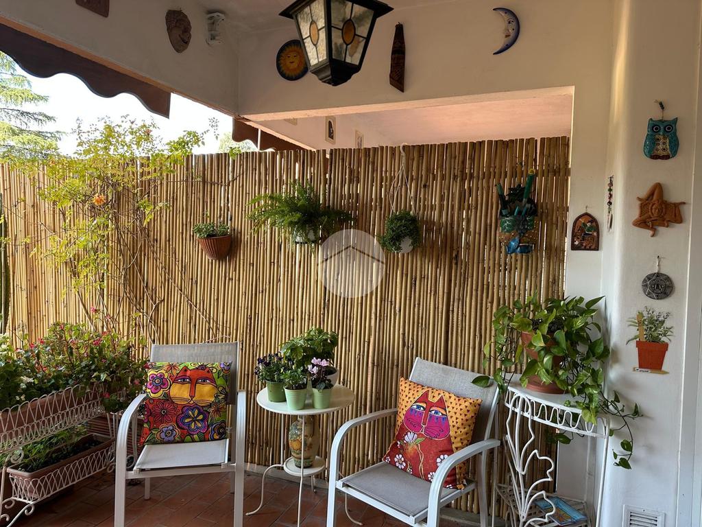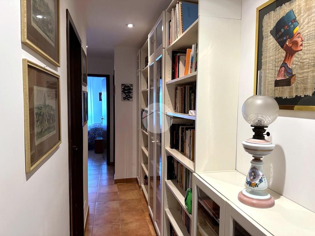 L'ingresso ci conduce nel salone ampio e accogliente, con tutto lo spazio per una zona pranzo e una zona salotto ben distinte. La cucina è abitabile e dispone di due piani di lavoro posizionati ad elle e il tavolo per mangiare. Sia in salone che in cucina si hanno due porte finestre per poter uscire nel terrazzo: uno spazio ideale per momenti di relax o in compagnia. Circa 50 mq di spazio esterno vivivibile e inserito in un contesto riservato e nel verde. Poi, proseguendo, troviamo la zona notte che si compone di due camere, le quali condividono un balcone e un comodo ripostiglio. Infine, l'appartamento ha due bagni con finestra, uno con doccia l'altro con vasca.
