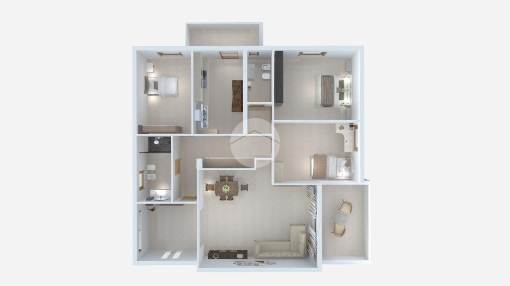 Proseguiamo in soggiorno, di fronte a noi la luce che esce dalle finestre riempie la stanza. Qui troviamo il primo balcone, vivibile. Seguendo un corridoio attrezzato di armadi si sviluppa la zona notte. Qui troviamo una prima camera e abbiamo uno accanto all'altro, il bagno e la camera matrimoniale. Adiacente alla cucina, funzionale e con un suo balcone privato, si trova la terza e ultima stanza, al momento adibita a stireria. Infine, due bagni con finestra.